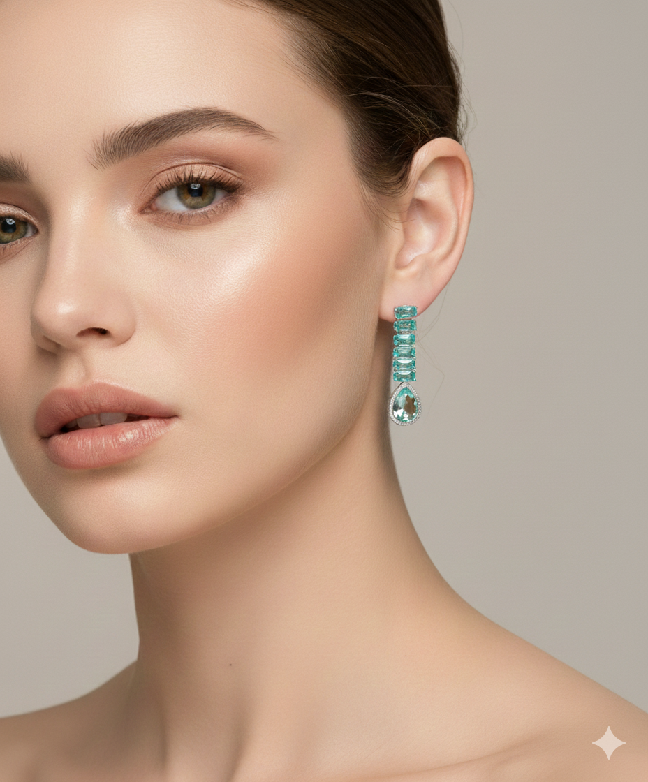 Com zircônias turmalina em corte riviera e uma delicada gota pendente, ele transforma qualquer look com elegância e presença.